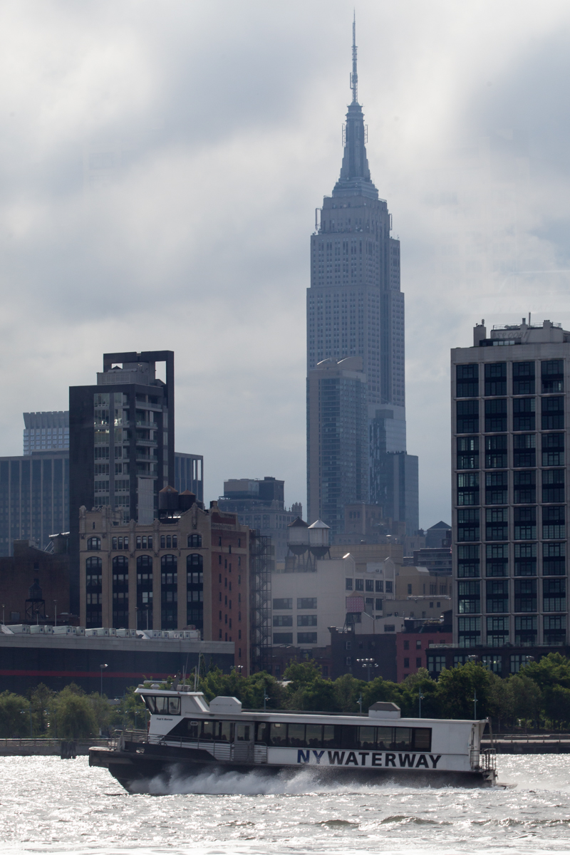 We left our perfect little anchorage yesterday morning and started our journey up the Hudson River. The night before was beautiful. We could see the Statue of Liberty, the Verrazano Narrows Bridge and the new World Trade Tower lit up from our boat. I will always be amazed at that anchorage and I know how lucky we were to be there. As we pulled away we again passed the statue and then headed out past Ellis Island and then onto the Hudson. Although there were lots of barges and water taxis, we had no trouble at all navigating through that busy area. I sat on the bow with cameras in hand while John did all the driving. I marveled at the new World Trade Tower, the Empire State Building and the skyline in general from our boat.