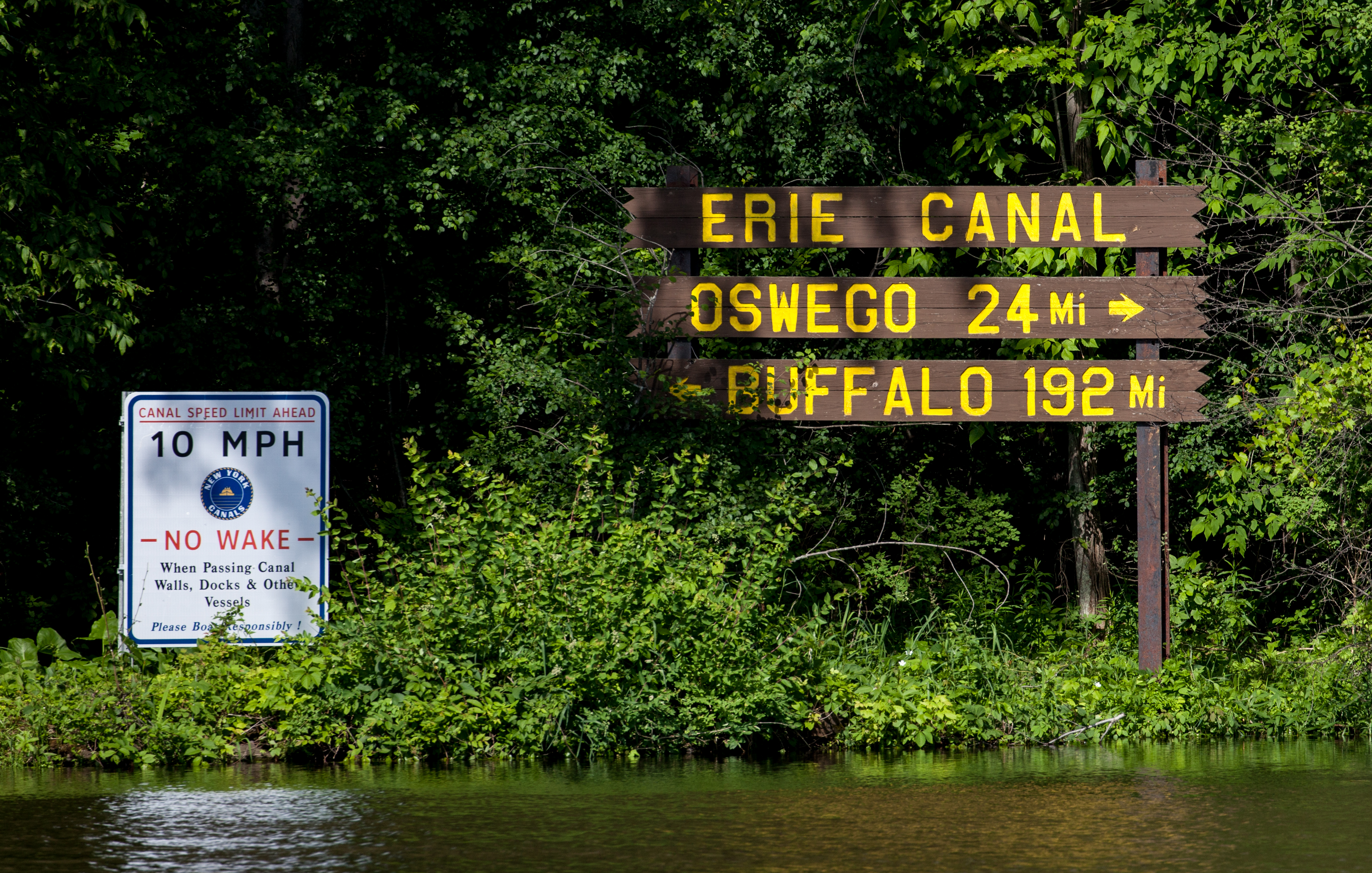 Yesterday, Saturday, we started out early. We went through Lock 23, still on the Erie Canal, and then came upon an area called Three Rivers Junction. There you choose to go towards Buffalo or to Oswego. We took the Oswego route, which put us on the Oswego Canal. Here the locks are numbered 1 through 8, except there is no number 4. While Lock 4 was in the original plan of the canal, it was decided later that it wasn’t needed but 3 and 5 had already been built. All of the locks on the Oswego Canal lowered us and we dropped a total of 119 feet yesterday. Some of the locks on this canal have very turbulent water at their top or at their base. We found the bottom of Lock 3 to be a surprise as it had a very strong current. Number 5 is the one known for its current, but probably because we knew about it ahead of time, it seemed less than the one at 3.