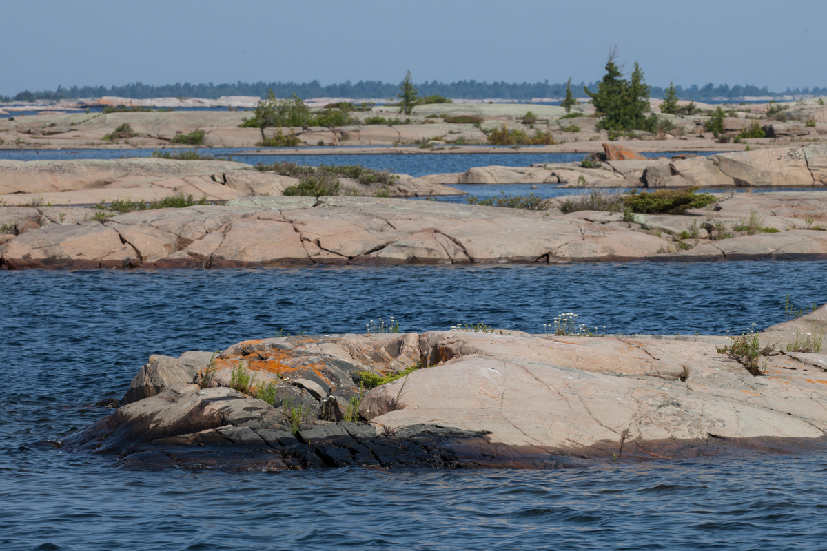 The next day, Friday, we took one last ride through Killarney on our way back to the beautiful anchorage in the Bustard Islands where we had stopped on our way north. It was a longer day of motoring and we were back out on the open bay, but the payoff was that after that day most of our travels would be in the small boat channel on Georgian Bay.