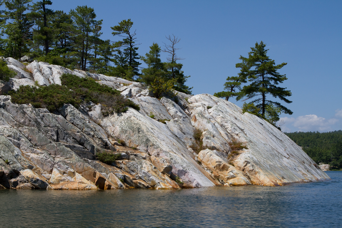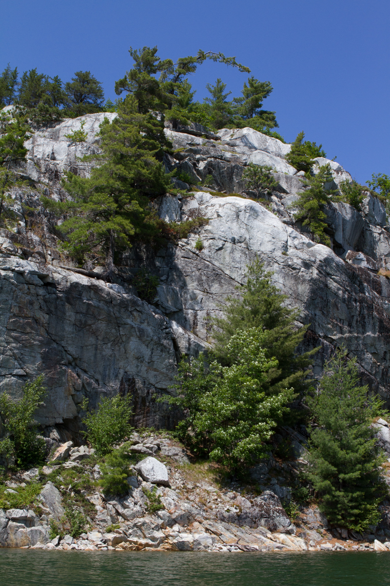 After a lazy morning in our anchorage, pausing for extra coffee outside in the warm sunshine, it was time to raise the anchor and be on our way. Leaving Frying Pan Bay was bittersweet as it meant we had reached the end of our trip on the Georgian Bay. We enjoyed our time there so much, but we have a date to meet Kelly and her family in Orillia on July 20th and we are so excited to see the kids and grandkids. It’s hard to believe it’s been almost four months since we have seen them as, in the past, we were together every few weeks. Thursday, though, was a gorgeous day and we fully enjoyed slowly winding our way through the narrow channels of rocks for the last time.