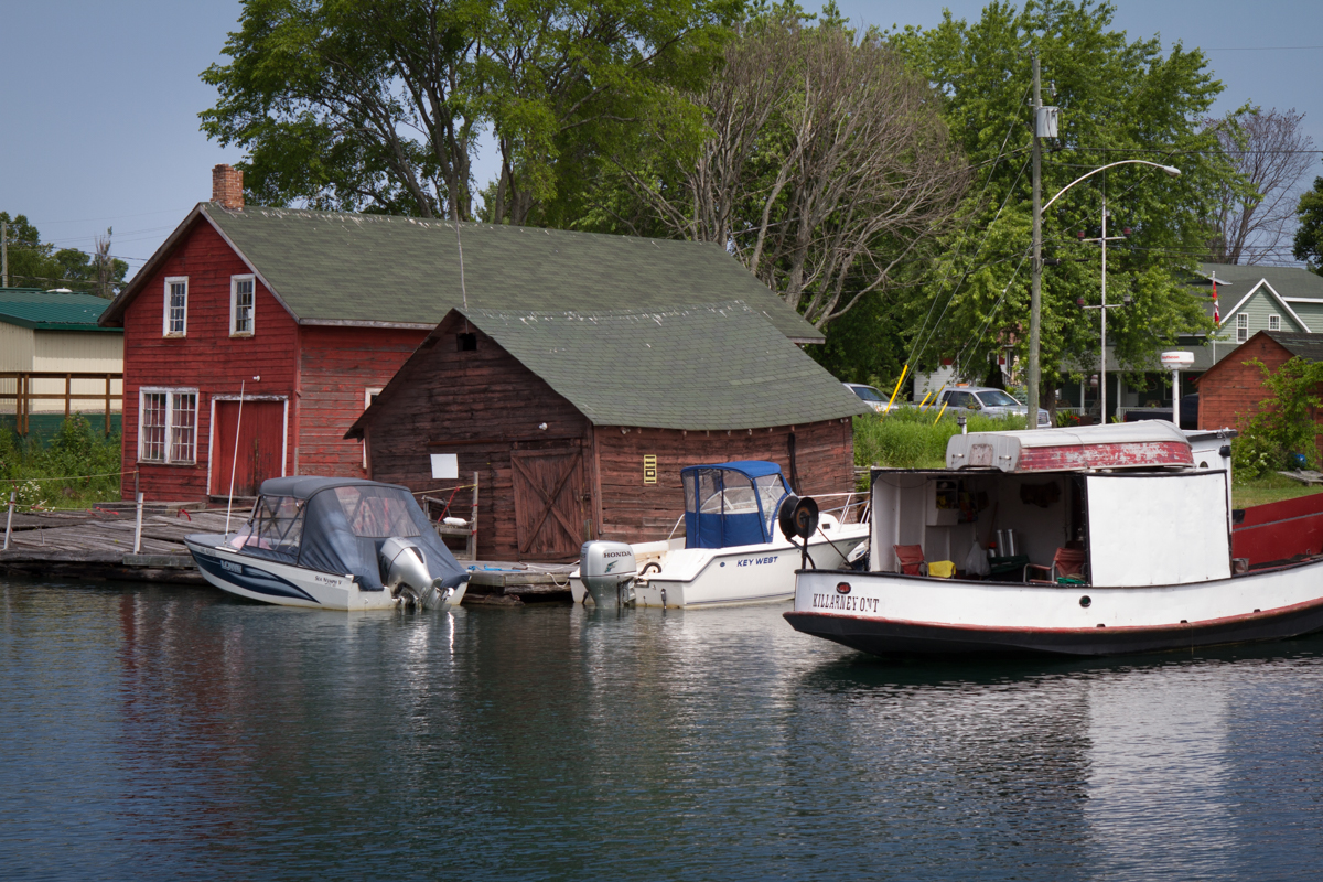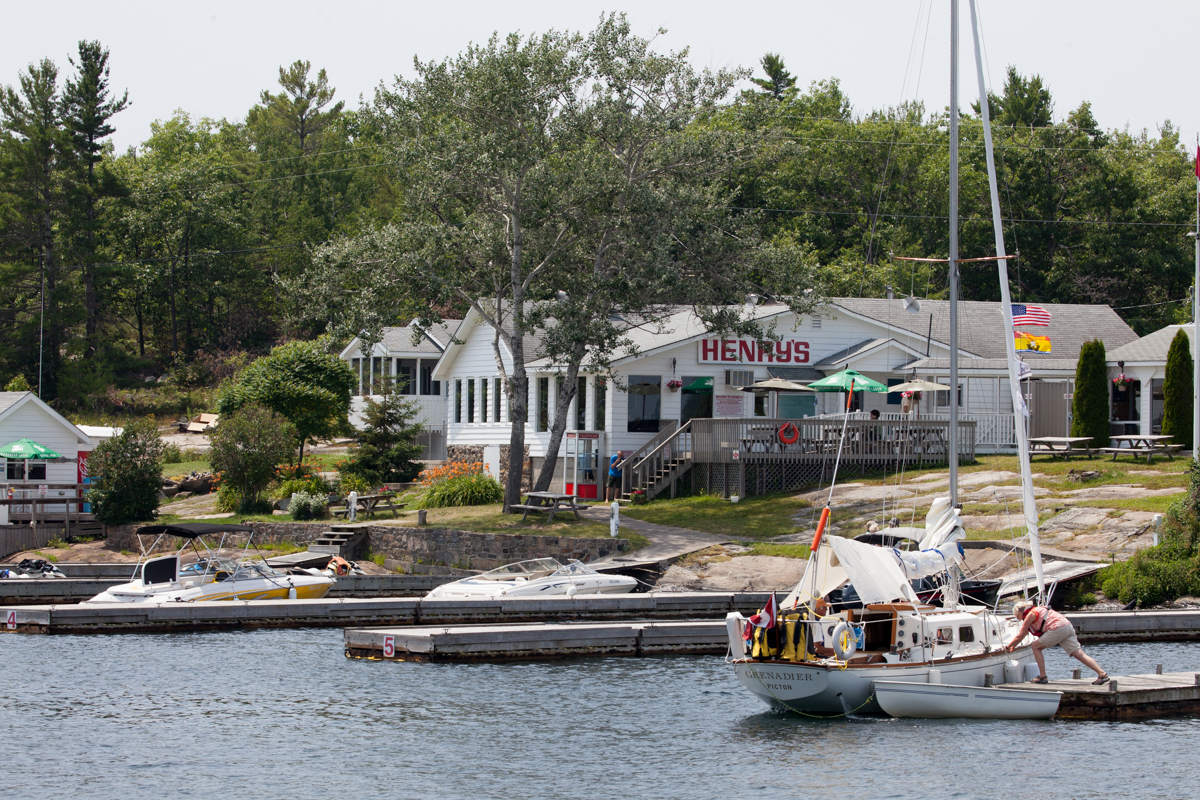 It was hard to leave Killarney, the gateway to the North Channel. The Killarney Mountain Lodge marina there was beautiful with its manicured lawns, beautiful flowers, brand new docks, and inviting red Adirondack chairs where one could sit and watch the boats go by. Before we untied I took a quick walk to the local fish market to buy fresh fish for dinner. Then off we went to Covered Portage Cove, a lovely anchorage near Killarney, where we took a dinghy ride and stayed for the night.