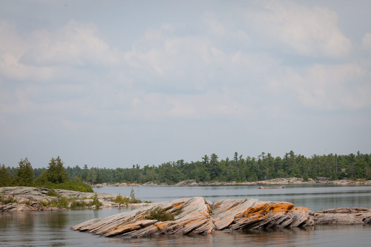 Wednesday brought us to Beausoleil Island, a Canadian National Park, where we entered Frying Pan Bay. It’s a very small anchorage, but a popular one. There are a couple of docks for a few boats, space for a few boats to anchor, and some space along the shore for those that both anchor and tie up to a tree with a stern line. We got AfterMath settled and had a relaxing afternoon and evening there.