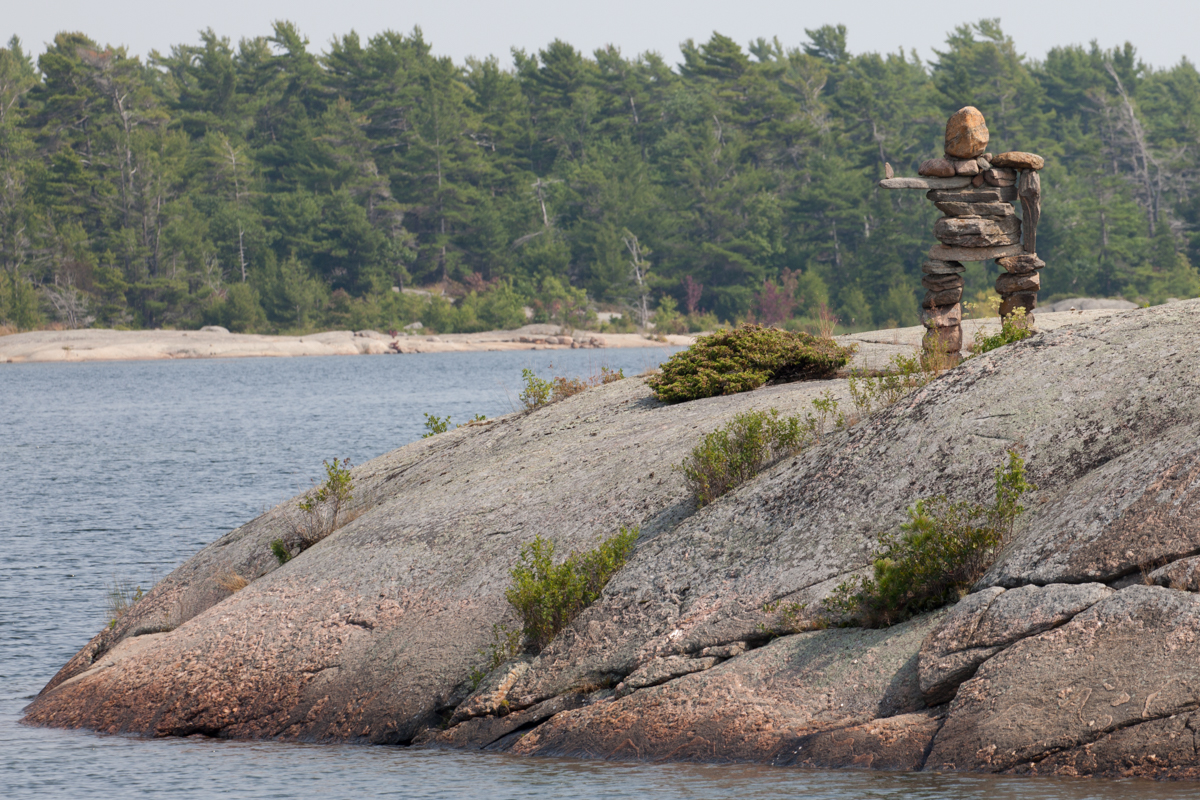 We arrived in Indian Harbor and were greeted by a large Indian made of stone at the entrance. It was a fun way to start our adventure in this little stone-surrounded cove. We anchored and put the dinghy in the water right away and then took off to do some exploration. Along the way we discovered lots of stone Indians. It was almost a treasure hunt to look for them.