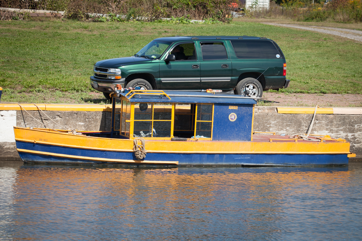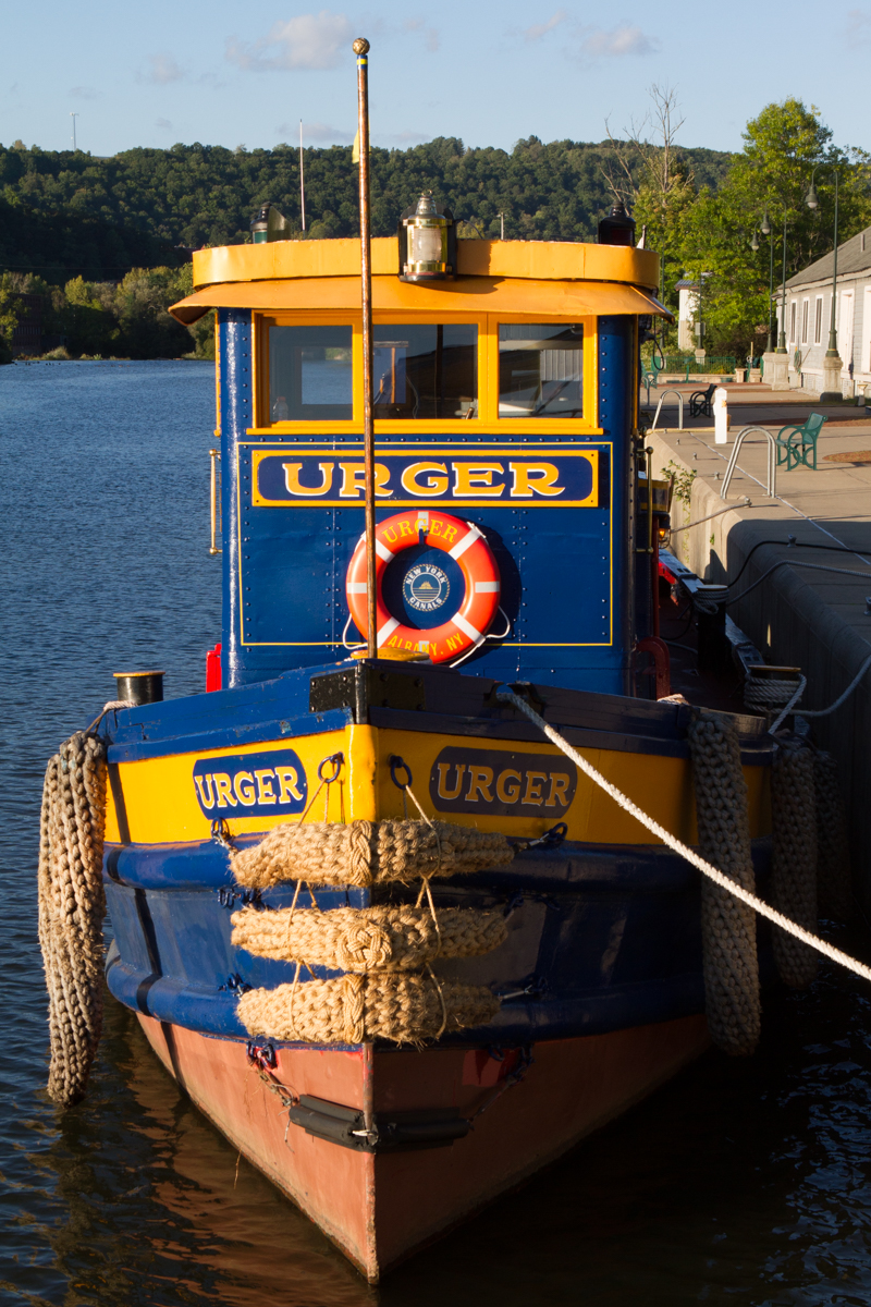 We left Utica and traveled to Little Falls, NY Monday the 14th. At the small marina there, we docked in front of a beautiful tugboat called “Urger”. When John was a young child, he wanted to be a tugboat captain and he still loves looking at them to this day. As it turns out, Urger is the flagship boat owned by the New York Canal Corporation. Built in 1901, it is one of the oldest working vessels in the country that is still afloat. Originally a fishing boat, it was sold to New York in the 1920’s. The engine was originally steam, but it was replaced with an Atlas Diesel in the 1940’s. That engine still powers the boat today. She was used as a tugboat into the early 1980’s and was put back to service in the 90’s as a teaching boat. Now Urger travels to cities along the canals to festivals and to schools. Fourth grade children at many schools tour the tug and learn about the Erie Canal. Urger is beautifully maintained and we enjoyed getting a good look at this historic vessel.