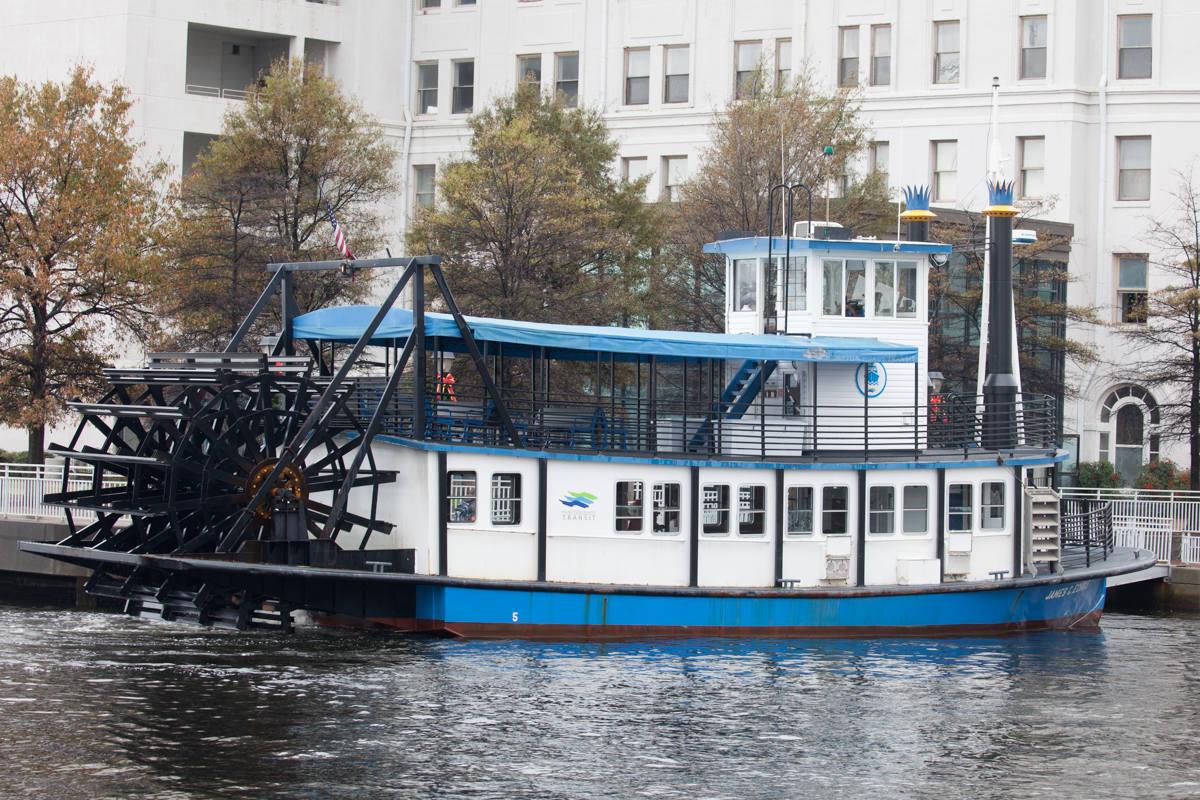 Each day of our adventure I marvel at the sounds one hears on the water. The lapping of the gentle waves, the seagulls crying as they fly about, the wind as it blows, the church bells playing tunes in countless towns, and, of course, the steady rumble of the engines as we move. But as we move farther along, we hear new sounds to add to the familiar ones. Dolphins now splash and spout water through their blowholes, fighter jets fly overhead rehearsing their maneuvers and, in Camp Lejeune, guns, mortars, and helicopters keep our Marines trained and ready. Sights change too. Shrimp boats are commonly seen with their huge nets, beautifully spread out in the water and amazingly colorful when hanging above the boats. The towns along the way often have Victorian homes lining the streets and now, as far south as we are, we are finding palm trees, huge live oaks, and Spanish moss. We are moving south and we are excited to be doing so.