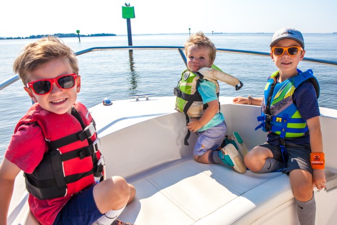 Of course, no trip to Jeff and Sarah’s would be complete without time on the water. We took one of his boats to Annapolis for breakfast one day, and we also spent time watching Jeff, Walter, and Rush riding the wake board while Sarah did the driving. First Jeff took Rush on the board with him, then Jeff and Walt rode, and finally, Walt, all by himself. Those boys have salt water in their veins, just as their father does!
